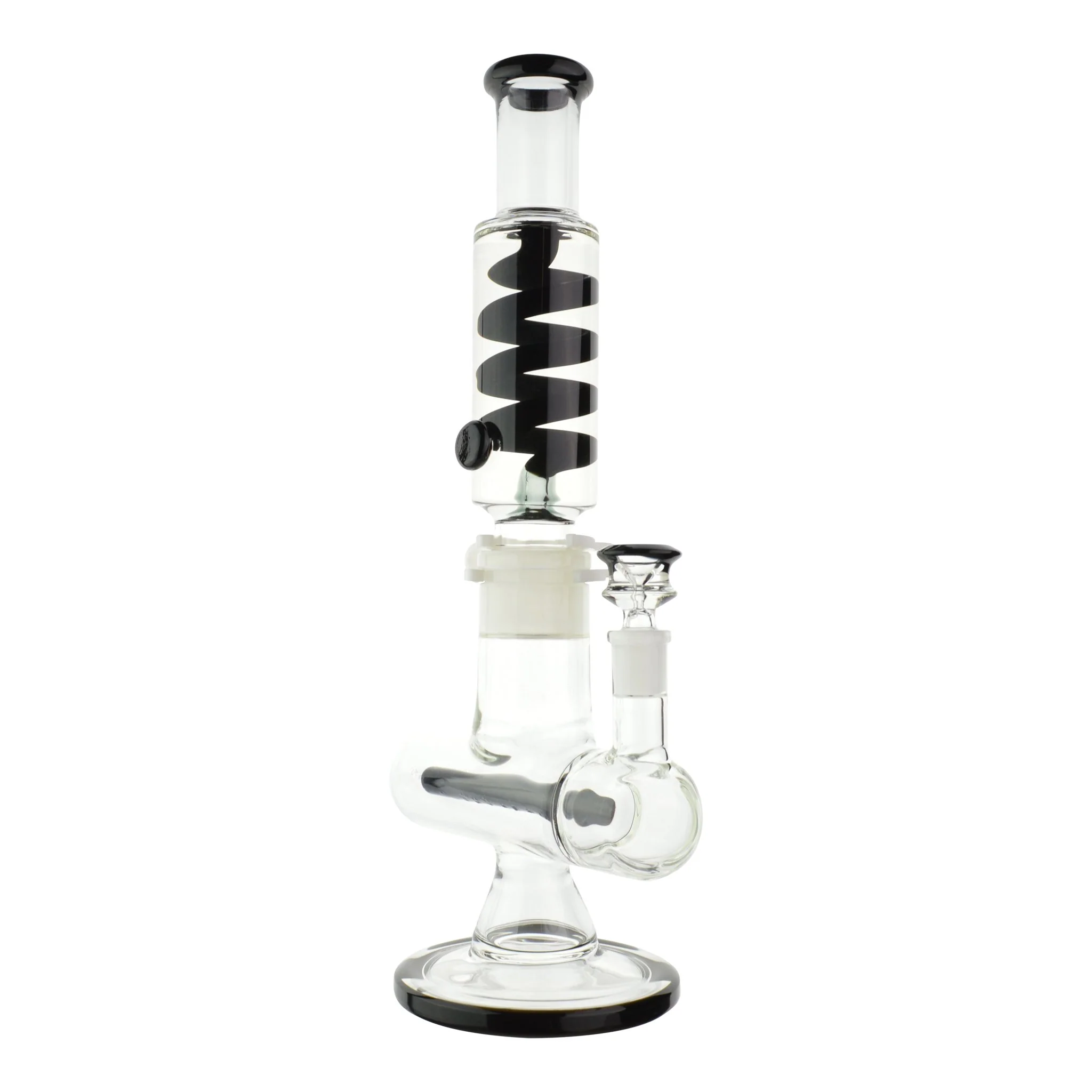 An incredible smoking experience awaits with the Colored Coil Inline Perc Rig. This 14-inch water bong is everything you can imagine and more. One of the best highlights of this glass water pipe is the condenser coil. A removable chamber filled with freezable glycerin is the star of the show and an upgrade from your typical catcher to prevent splashback and keep hits icy cold. To kick things up a notch, the inline perc will filter your hits before it reaches the coil to cool down - talk about the ultimate bong rip! Enjoy the flared mouthpiece for better comfort and for easy cleaning. Start planning your next smoke sesh with this cool bong and you’ll never look back.