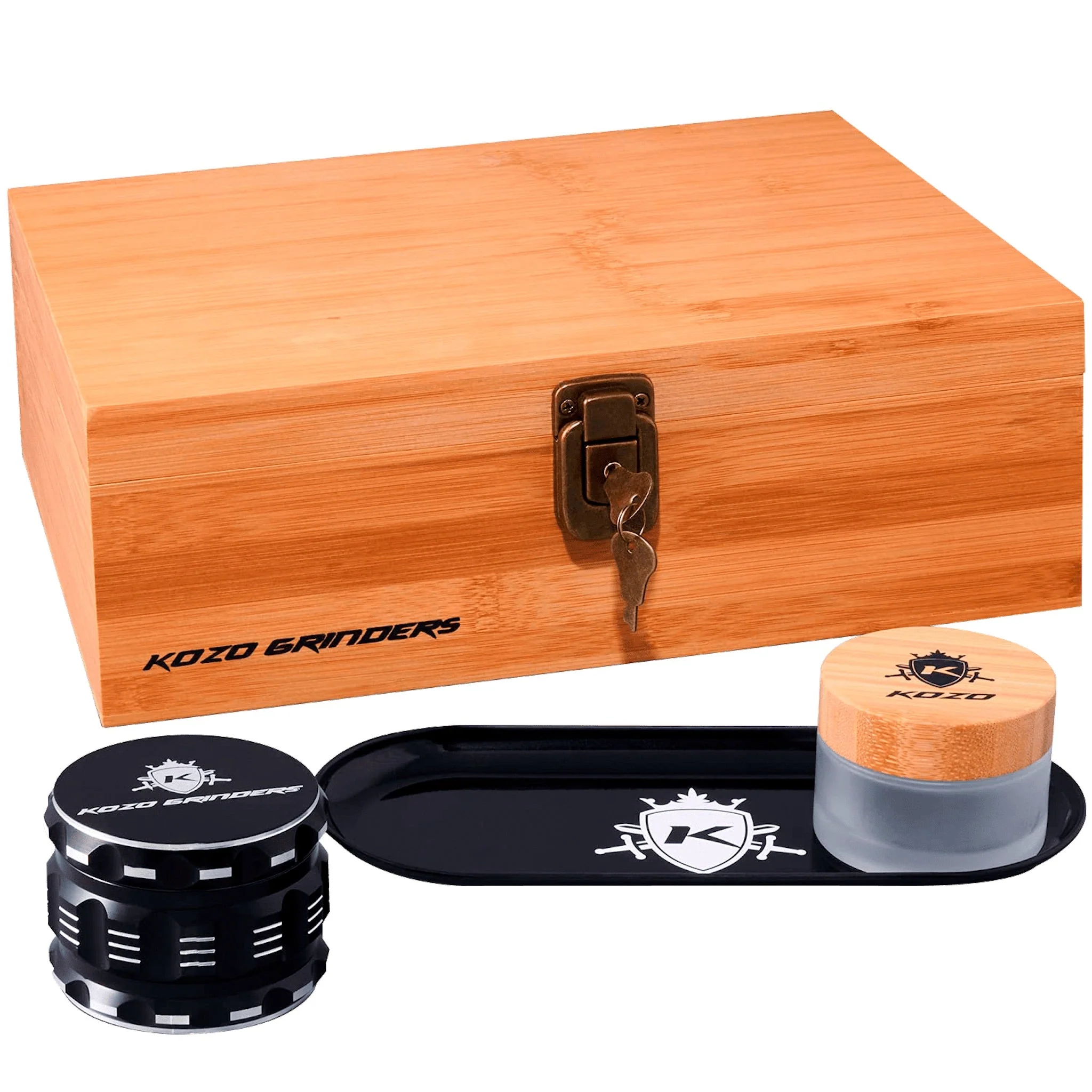 The Kozo Stash Box is the ultimate solution for storing and organizing your buds. Made with natural wood, it's both sturdy and stylish. With multiple compartments and lockable components, your stash will stay safe and secure. Plus, each box comes with a grinder, stash jar, and rolling tray. Easily clean with warm soapy water. (Lock it up with the included key!)